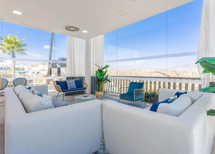 Brand New Luxury Apartment La Cala De Mijas med 2 sovrum, som erbjuder utsikt över bergen, ligger 7 km från La Plaza de los Chinorros. Den 110 m² stora lägenheten har en pool och en terrass med utsikt över poolen.